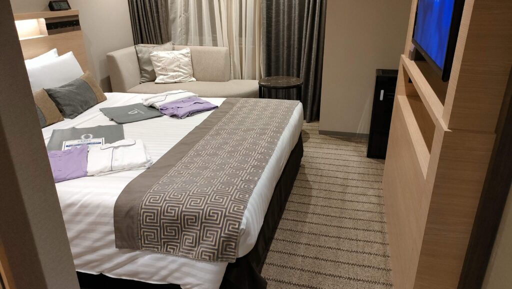 今回紹介するのはダブルルームのお部屋です。大人2人+こども1人(2歳1ヶ月)で宿泊しました。