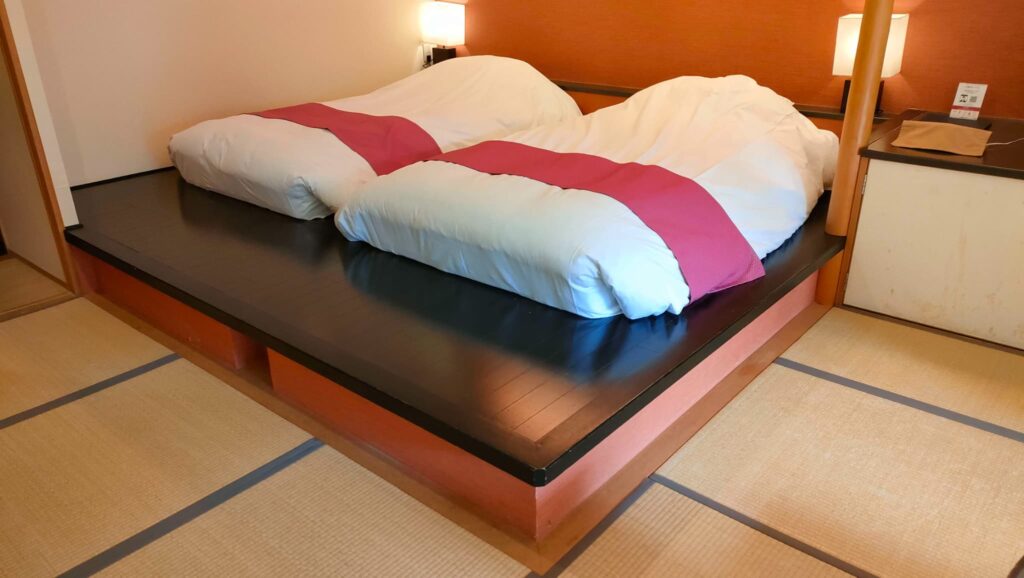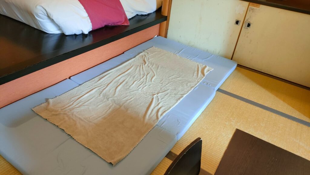 A お部屋にお布団をご用意いておりますので畳のスペースにお布団を敷いて頂きます。