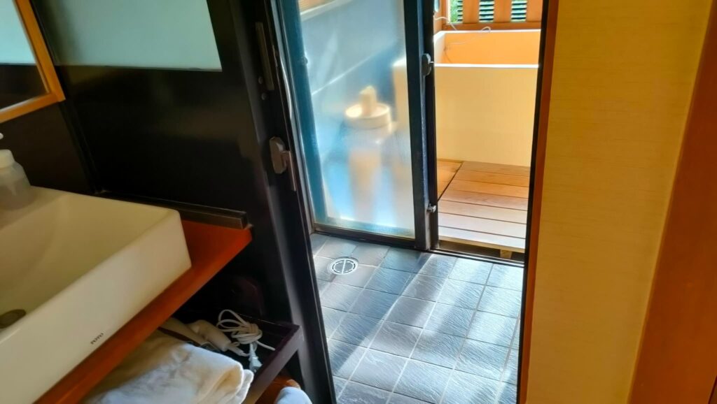 大浴場と貸切風呂はいずれも中庭の回廊を通って行くこととなります。