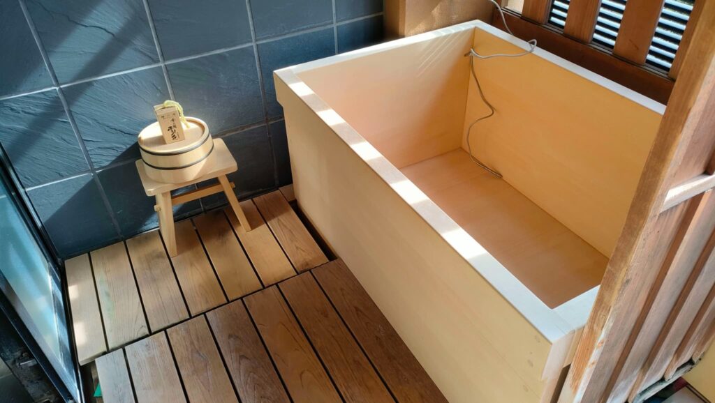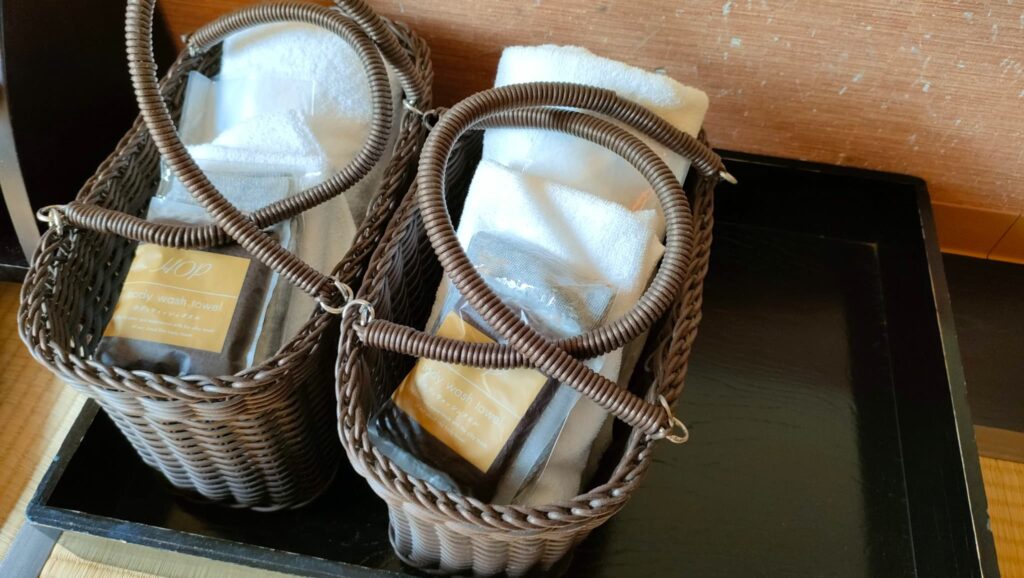 共立リゾートでおなじみの湯かごです。大浴場、貸切露天風呂の利用時にとても便利です。