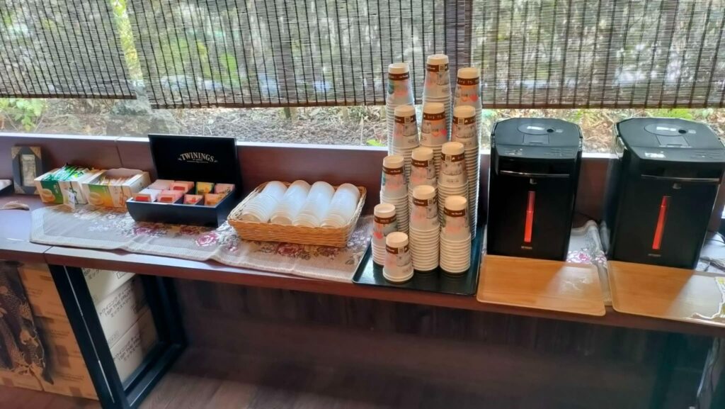 ロビーにある茶菓子の無料サービスコーナーでは3つまで自由にもらえます。