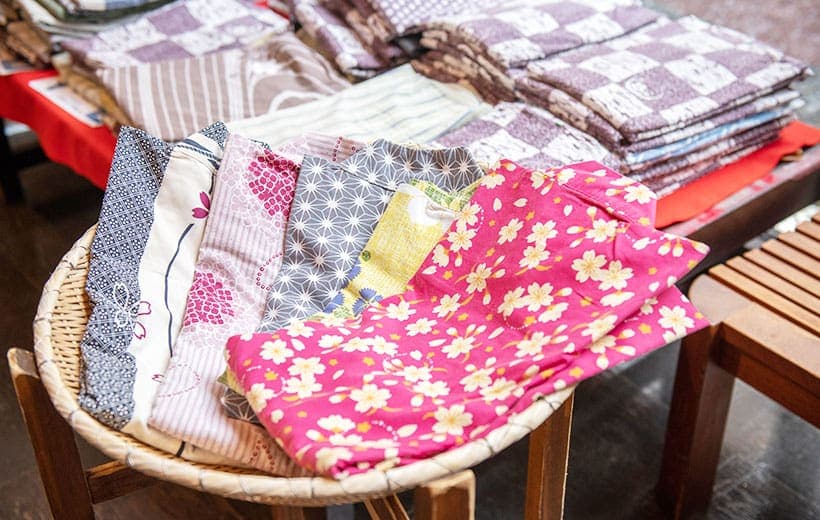浴衣処もあり、浴衣はSサイズが140㎝からですが、作務衣であれば80㎝からあるので、1~2歳ぐらいの子どもなら着用できます。