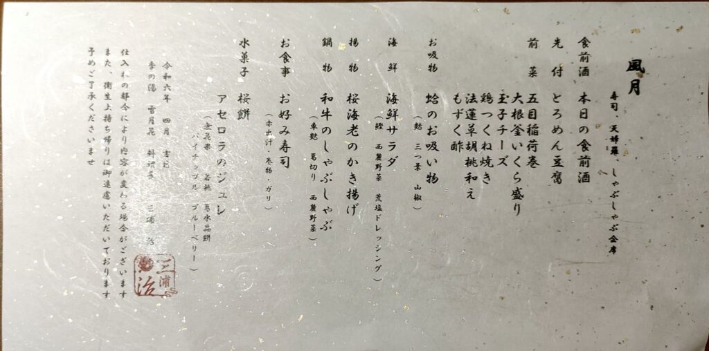 お食事処「風月」・・・和牛しゃぶしゃぶと寿司会席