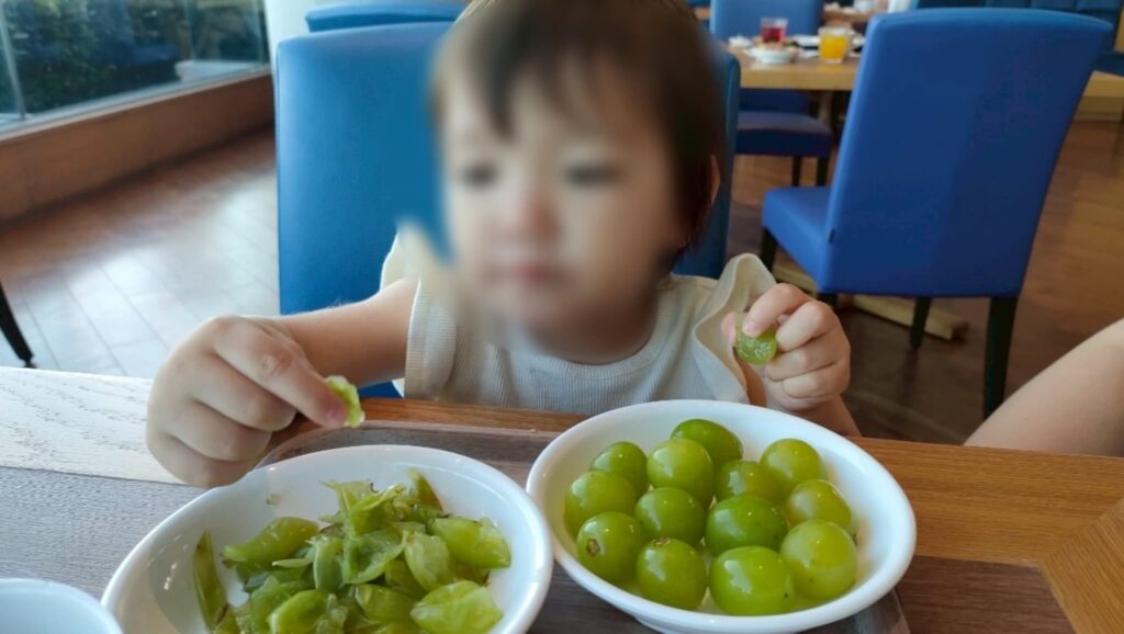 わが子はブドウが気に入ったようでひたすら食べまくっていました。