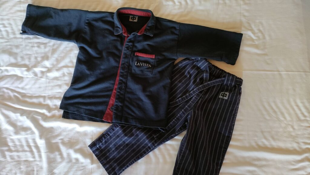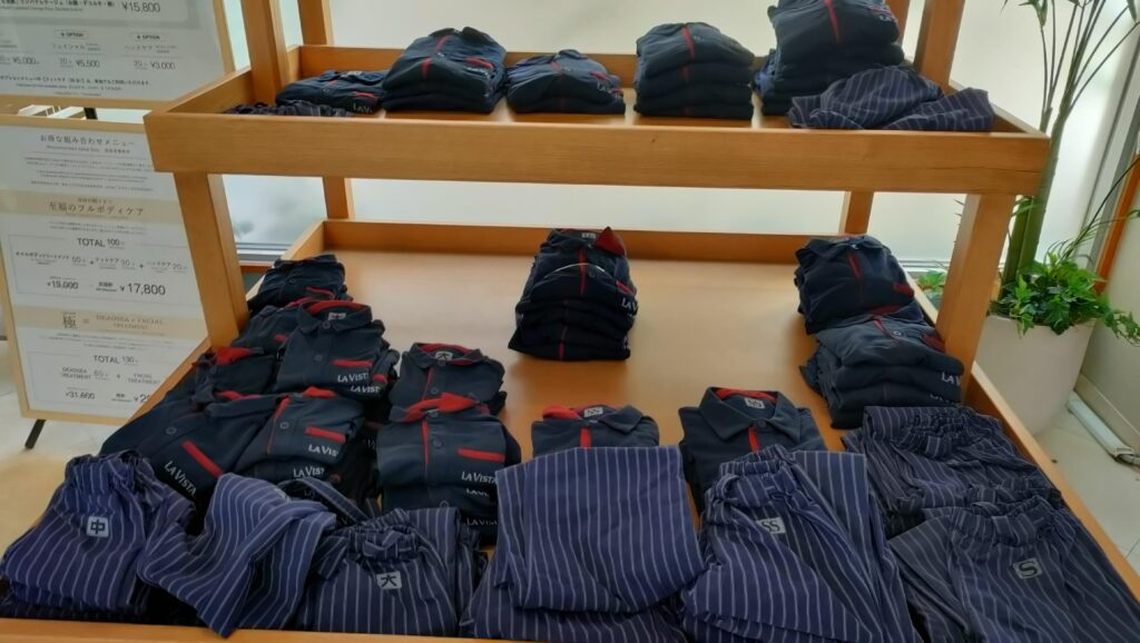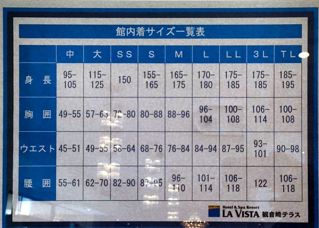館内着はLサイズとMサイズが部屋にありますが、子ども用サイズは2階ロビーにあります。