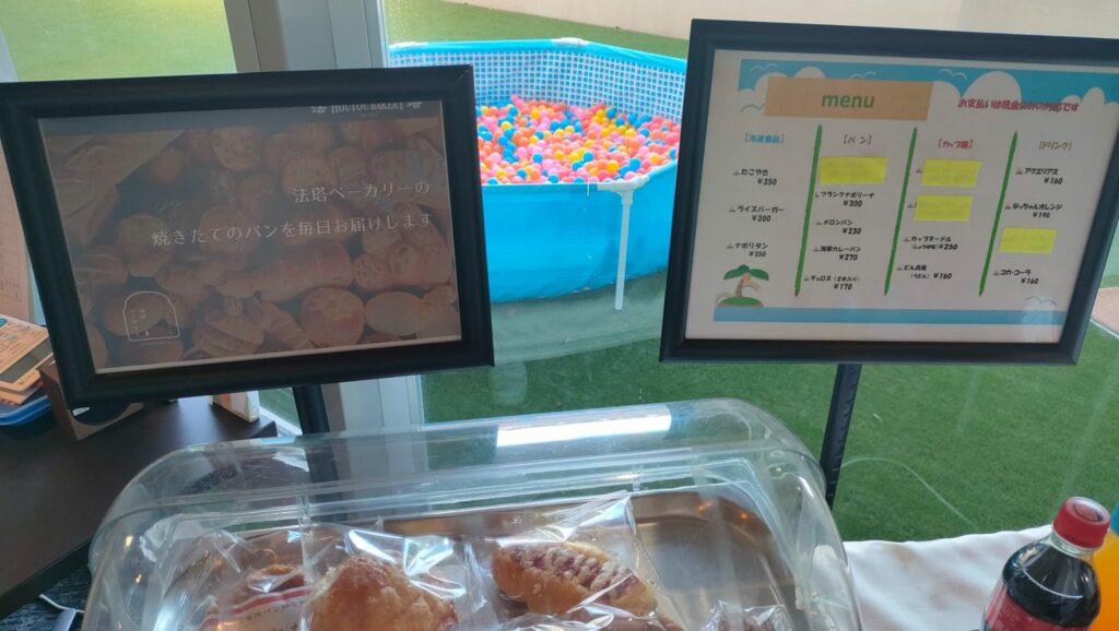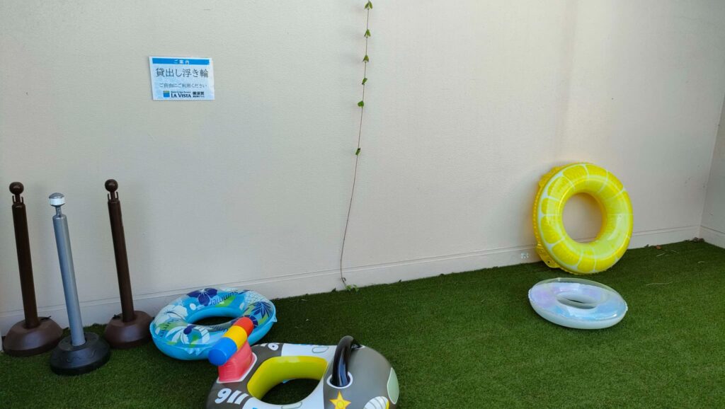 こちらは浮き輪の無料の貸し出しコーナーです。先着順で余っていれば自由に持ち出し可能です。