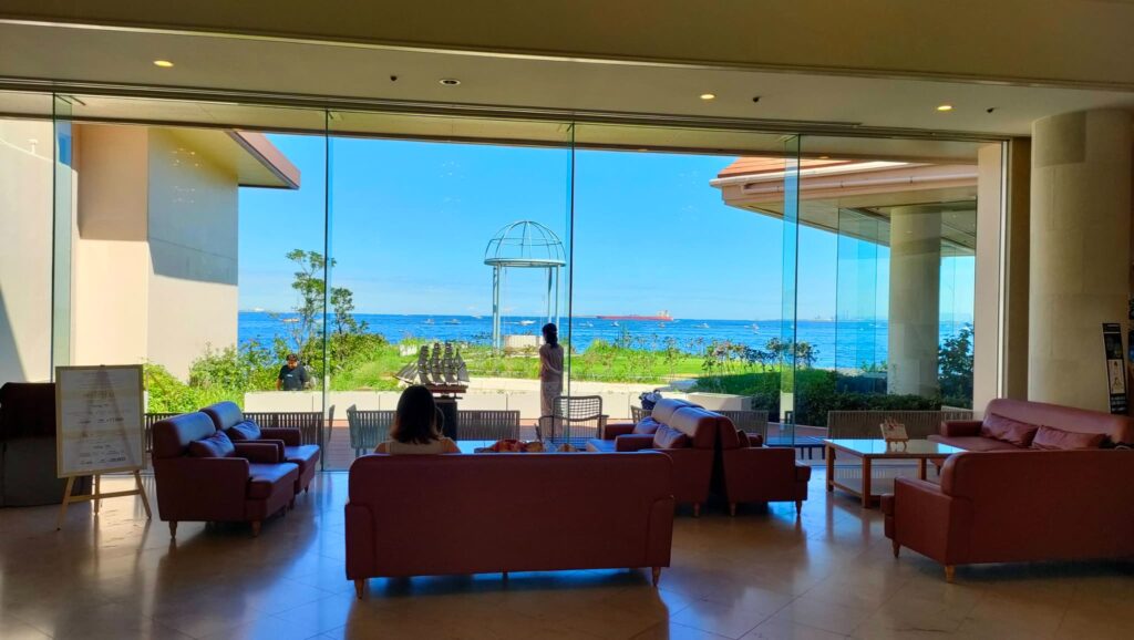 エントランスから入った瞬間に目の前に広がるオーシャンビュー!