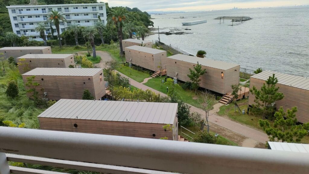 3階の313号室からの眺望です。目の前にはグランピング施設が見えます。