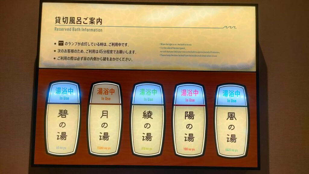 カードキーはチェックイン時にもらうため、チェックイン前は温浴施設は利用できません。