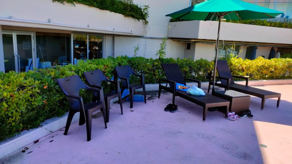 とても広々とした空間と、見事なオーシャンビューだったため、プール利用後やチェックイン前には何度も利用しました。