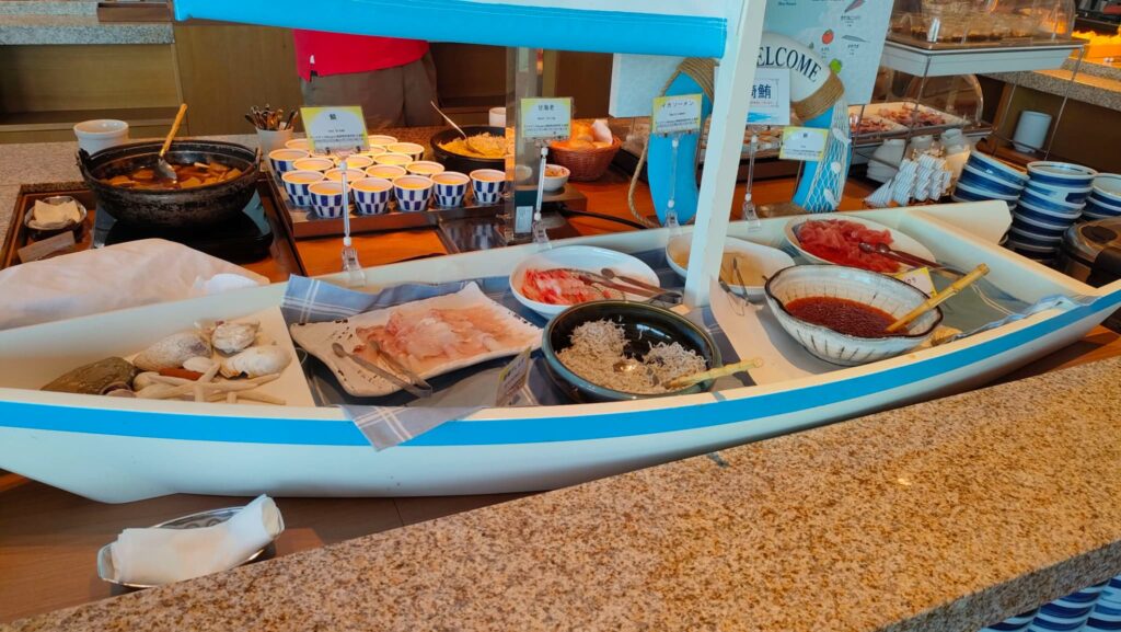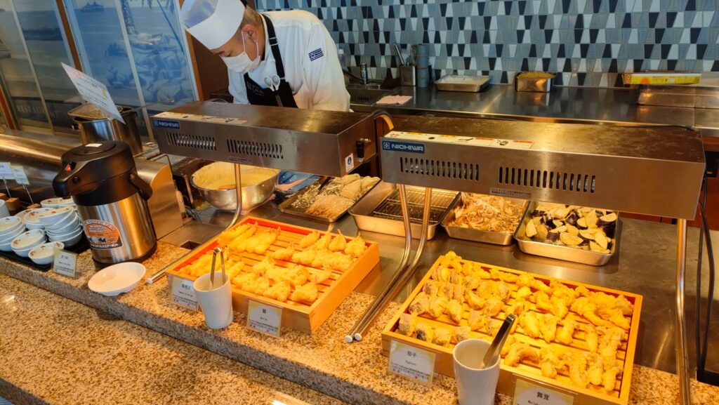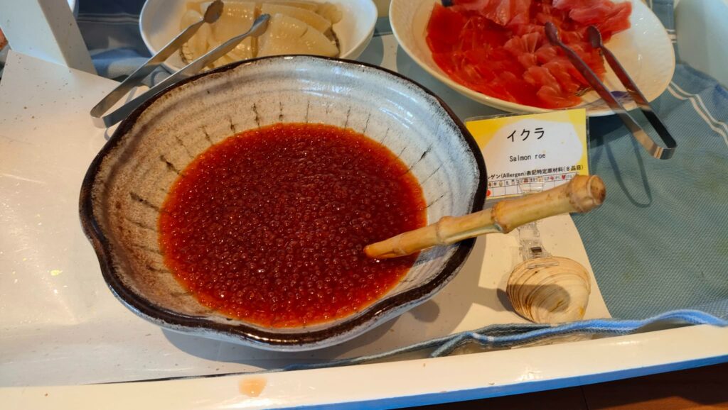 - 朝食はいくらかけ放題の海鮮や天ぷらなど内容が充実している。