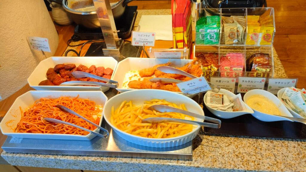 ハンバーグ、ナポリタン、海老フライ、ポテト